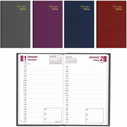 Brownline Daily Pocket Planner, 4-3/4" x 3" , English, Assorted Colours - Pocket - Daily - 12 Month - January 2026 to December 2026 - 7:00 AM to 6:30 PM - Half-hourly - 1 Day Single Page Layout - 3" (76.20 mm) x 4 3/4" (120.65 mm) Sheet Size - Sewn - Asso