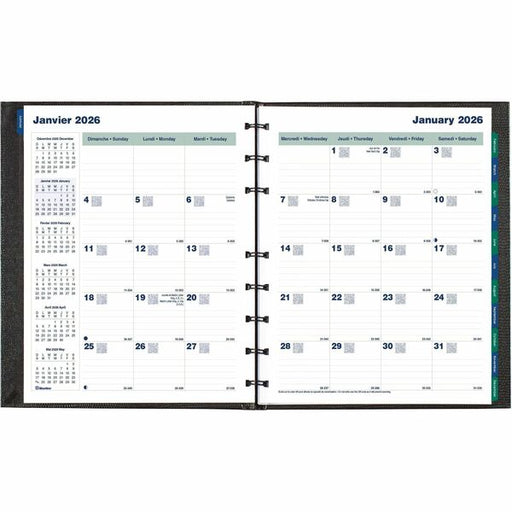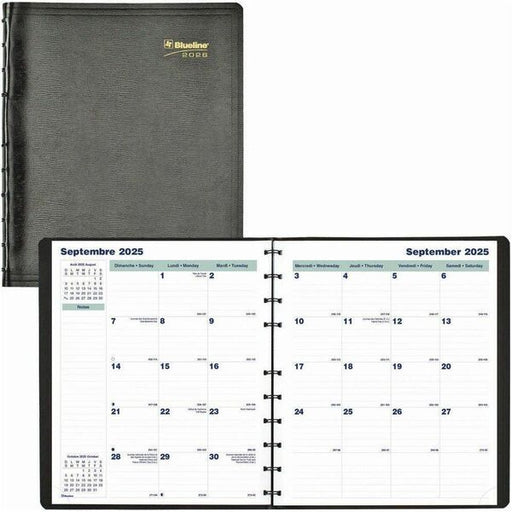 Blueline MiracleBind CoilPro Monthly Planner, 9-1/4" x 7-1/4" , Bilingual, Black - Julian Dates - Monthly - 16 Month - September 2025 to December 2026 - 1 Month Double Page Layout - 7 1/4" (184.15 mm) x 9 1/4" (234.95 mm) Sheet Size - Twin Wire - Black -