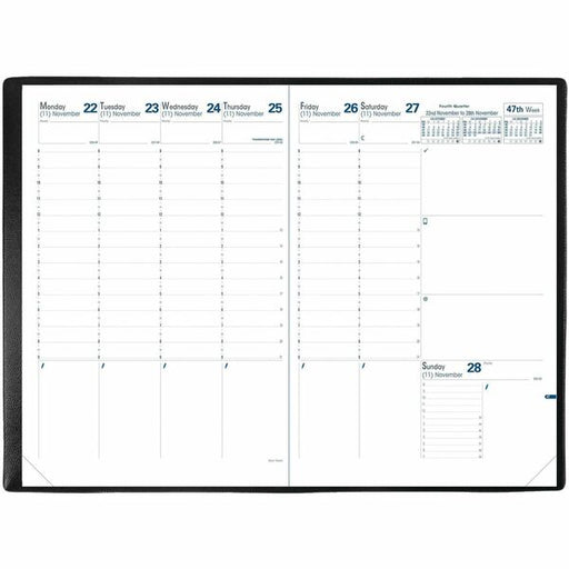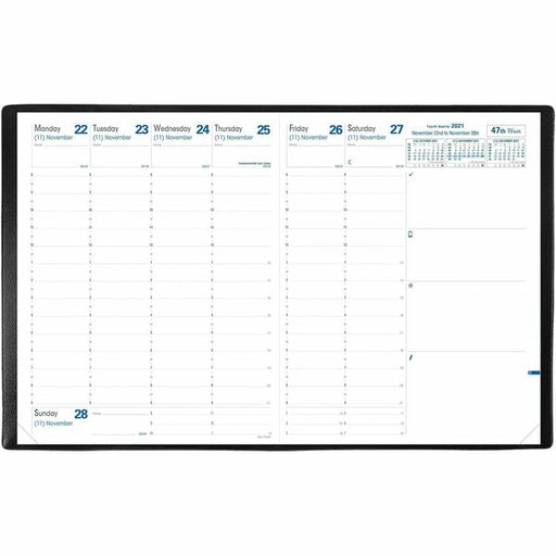 Blueline MiracleBind Weekly Planner, 11" x 9-1/6" , Bilingual, Black - Weekly - 2026 to 2026 - 7:00 AM to 8:45 PM - Monday - Friday, Quarter-hourly - 1 Week Double Page Layout - 9 1/16" (230.12 mm) x 11" (279.40 mm) Sheet Size - Twin Wire - Black - Black
