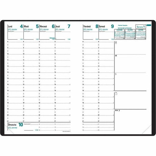 Quo Vadis Minister Weekly Planner, 9-1/2" x 6-1/4" , French, Freeport Black - Weekly, Yearly - 14 Month - December 2025 to January 2027 - 8:00 AM to 9:00 PM - Half-hourly - 1 Week Double Page Layout - White Sheet - 9.50" (241.30 mm) x 6.25" (158.75 mm) Bl
