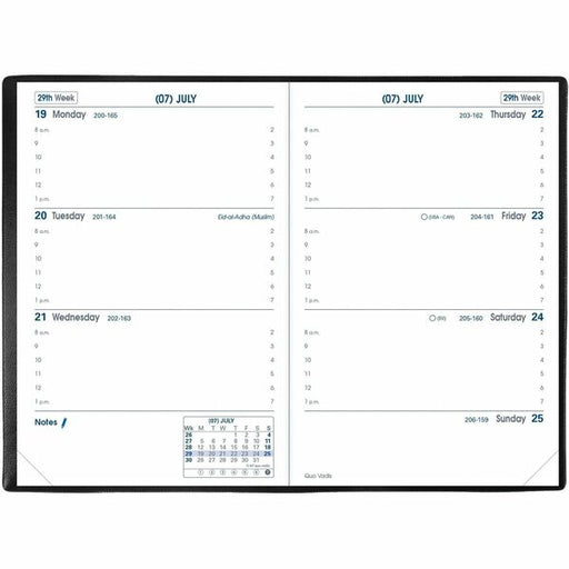 Quo Vadis Trinote Weekly Planner, 8-1/2" x 7-1/4" , French, Freeport Black - Weekly - 8:00 AM to 9:00 PM - Half-hourly - 1 Week Double Page Layout - 7 1/4" (184.15 mm) x 9 1/2" (241.30 mm) Sheet Size - Black - 0.5" (12.70 mm) Height x 7.2" (184.15 mm) Wid