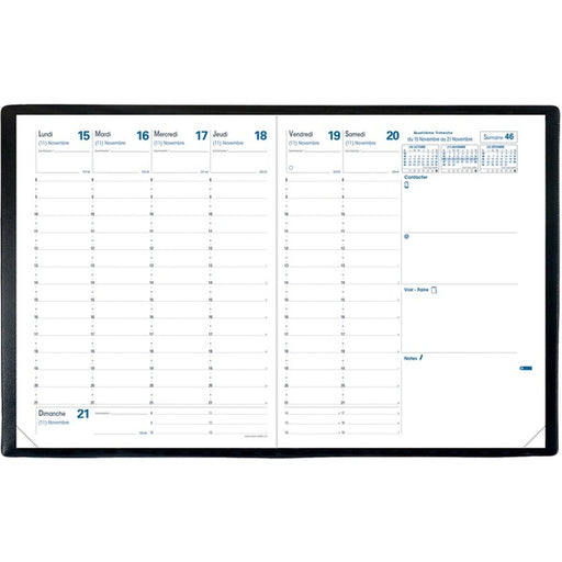 Quo Vadis President Weekly Planner, 10-3/4" x 8-1/4" , French, Freeport Black - Weekly, Yearly - 14 Month - November 2025 to December 2026 - 8:00 AM to 9:00 PM - Half-hourly - 1 Week Double Page Layout - 8 1/4" (209.55 mm) x 10 3/4" (273.05 mm) Sheet Size
