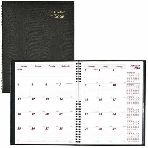 Brownline CoilPro Monthly Planner (14 Months) , 11" x 8-1/2" , English, Black - Julian Dates - Monthly - 14 Month - December 2025 to January 2027 - 1 Month Double Page Layout - Letter - 8 1/2" (215.90 mm) x 11" (279.40 mm) Sheet Size - Twin Wire - Black -