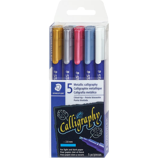 Staedtler Metallic Markers Calligraphy Assorted Colours 5/pkg - Fine Brush, Medium, Bold Marker Point - Assorted Metallic Ink - Water Based - 5 / Pack