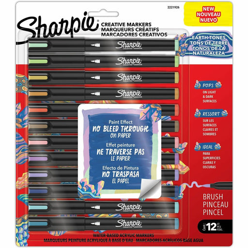 Sharpie Creative Markers - Brush Marker Point - Earth Tone Ink - Water Based, Acrylic Based - Multipurpose - 12 / Pack