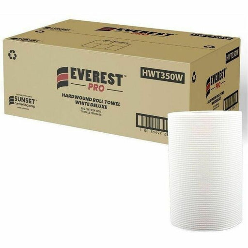 Everest Pro Hardwound Roll Towel White Deluxe - 350 ft (106.68 m) Length - White - Paper - 12 Rolls Per Case Rolls/Case - 12 / Box