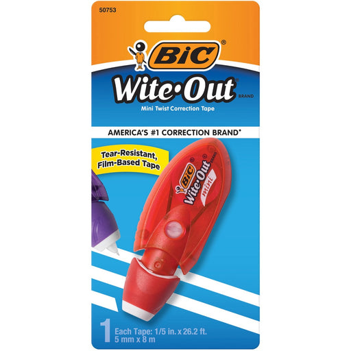 BIC Wite-Out Brand Mini Twist Correction Tape, White, Tear-resistant and Film-Based Tape, 1-Count - 0.20" (5.08 mm) Tape Width x 25.9 ft (7.90 m) Tape Length - White Tape - Mini Translucent Dispenser - Tear Resistant, Film-based, Self-winding, Compact - W
