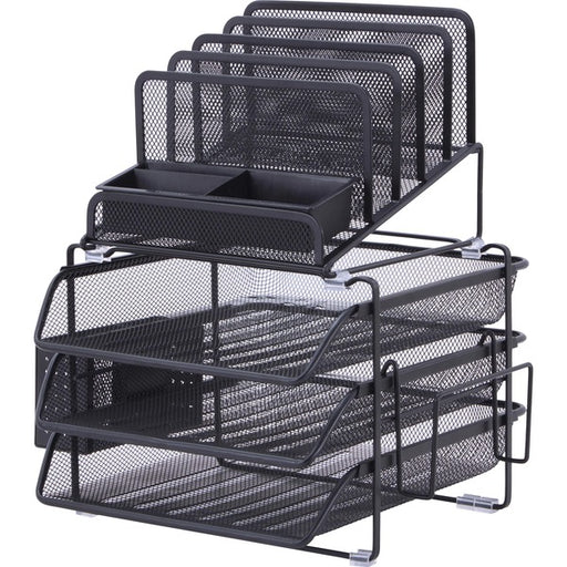 Lorell Divided 4-tier Desktop Organizer - 4 Tier(s) - 15.7" (400.05 mm) Height x 12.9" (326.90 mm) Width x 14.4" (365 mm) Depth - Desktop - Black - Plastic, Mesh - 1 Each