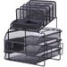 Lorell Divided 4-tier Desktop Organizer - 4 Tier(s) - 15.8" (400.05 mm) Height x 12.9" (326.90 mm) Width x 14.4" (365 mm) Depth - Desktop - Black - Plastic, Mesh - 1 Each