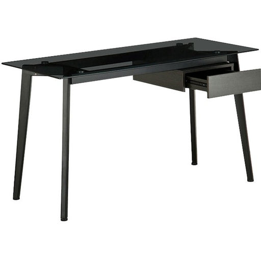 HDL Glass Top Computer Desk - Gray Top - Powder Coated Four Leg, Black Oak Base - Contemporary Style - 4 Legs x 51.2" (1300.48 mm) Table Top Width x 25.7" (652.78 mm) Table Top Depth x 0.3" (8 mm) Table Top Thickness - 30" (762 mm) Height - Home Office, C