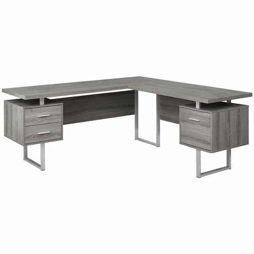 Monarch Specialties Computer Desk - 80"L / Grey Left Or Right Facing - Gray L-shaped, Laminated Top - Gray, Silver Base - Contemporary/Modern Style - 2 Drawers - 6 Legs - 198 lb (89.81 kg) Capacity - 78.7" (1998.98 mm) Table Top Length x 47.2" (1198.88 mm