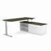 Height adjustable desk with open cabinet and locking lateral file. Desk top is 30" deep and includes a centre grommet. Desk height adjustment from 24.4 to 50 in high. 71 x 65 in.