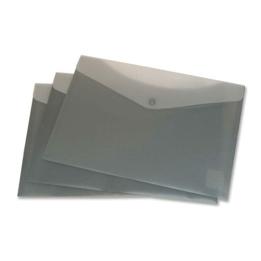 VLB Vinyl File Pocket - 9" (228.60 mm) x 13 1/4" (336.55 mm) - 2 Front & Back Pocket(s) - Polypropylene - Charcoal - Durable, Button Closure - 6 / Pack
