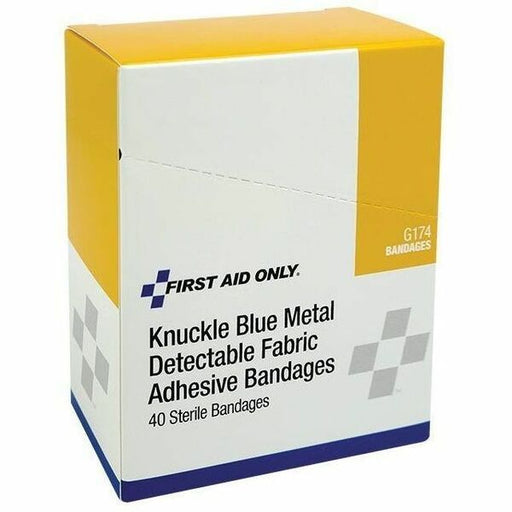 First Aid Central Adhesive Blue Metal Detectable Fabric Knuckle Bandages, 40/Box - 40 / Box