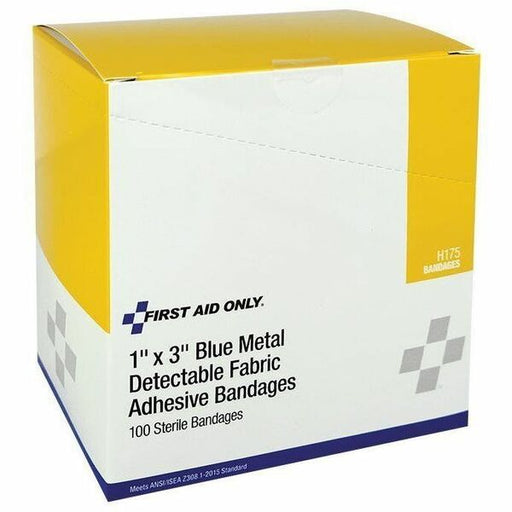 First Aid Central Adhesive Blue Metal Detectable Fabric Bandages, 2.5 x 7.6cm (1"x3"), 100/Box - Blue - Fabric - 100 / Box