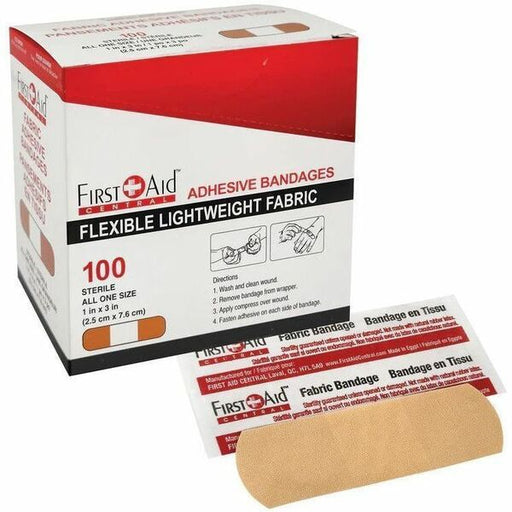 First Aid Central Adhesive Fabric Bandages, 2.5 x 7.6cm (1" x 3") - - 1" (25.40 mm) Width x 3" (76.20 mm) Length - Fabric - 100 / Pack