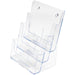 Marketing Information:Compact, desktop literature holder features a three-tier design so you can display a variety of brochures. Each pocket displays literature up to 8-1/2" wide. Literature holder is made of crystal-clear plastic. Use as a stand-alone display on countertop or mount on a wall.
