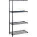 Industrial wire shelving offers adjustable leveling feet with plastic caps to protect floors and a dust-free wire design. Flexible design allows for 1" shelf adjustments and modular expansion. Each shelf holds 1,250 lb. evenly distributed. Wire shelving is made from strong, welded steel wire construction (10-gauge shelf surface, 3-gauge frame, 16-gauge posts, 6-gauge wave pattern) with a durable powder-coat finish. Open wire design permits air circulation and prevents dust accumulation. Add-on and starter units can be combined to expand your shelving system. Easy collar-and-sleeve assembly requires no tools. Add-on unit includes four shelves, two posts and snap-together clips. Starter unit is sold separately and includes four shelves, four posts and snap-together clips.