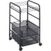 Get Onyx organized with this mesh file cart. Open file cart features durable, contemporary mesh for practical organization. Tubular steel frame includes a place for open hanging files and two storage drawers to keep office essentials easily accessible. From notebooks to paper clips and everything in between, you'll never wonder where your stapler went again. File cart stores under your desk or worksurface when not needed for extra space in your work area. File cart also rolls easily on four 1-1/2" swivel casters (two locking). Durable steel has a black powder-coat finish. Each drawer holds up to 10 lb. The total capacity is 75 lb.