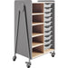 Looking for a robust, mobile storage solution for your media center, classroom, or office? The Whiffle double-column 48” H storage cart delivers with four shelves in one column and 10 totes in the other—plenty of space to store all your supplies. Easy to remove three-inch totes are tough enough to withstand the rigors of any environment while providing ample space for storage. The multi-functional mobile design features a laminate work surface and a magnetic, dry-erase laminate back, so you can use it to house a laptop or to display ideas. Once you’re done, simply roll it out of way on the unit’s heavy-duty swiveling casters, which lock into place for safety. Choose from three vibrant color panel options to brighten your space.