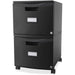 Mobile cabinet with two drawers makes filing easy and efficient. Made of heavy-duty plastic, cabinet features built-in rails for letter-size or legal-size hanging files. Each drawer locks individually and includes a built-in label holder. Cabinet rolls on four 1-1/2" casters (two are locking). Cabinet is made with a high percentage of post-consumer recycled material.