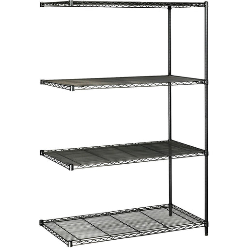 Safco Industrial Wire Shelving Add-On Unit - 48" (121.92 cm) Width x 24" (60.96 cm) Depth x 72" (182.88 cm) Height - 4 x Shelf(ves) - 3200 lb (1451495.58 g) Load Capacity - Adjustable Glide, Durable - Black - Powder Coated - Steel - Assembly Required