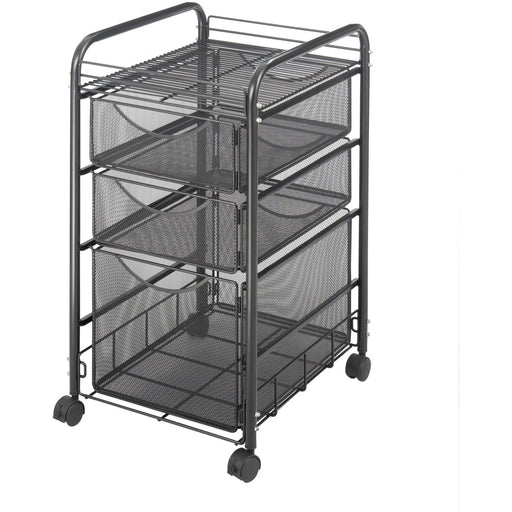 Safco Onyx Mesh File Cart - 2 Shelf - 3 Drawer - 4 Casters - 1.50" (38.10 mm) Caster Size - Steel - 15.7" (400.05 mm) Width x 17" (431.80 mm) Depth x 27" (685.80 mm) Height - Steel Frame - Black - 1 Each