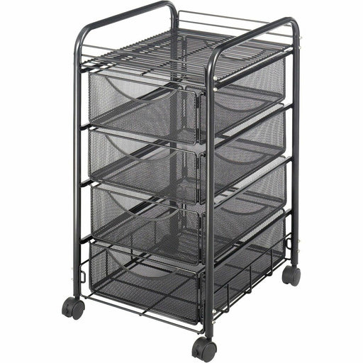 Safco Onyx Double Mesh Mobile File Cart - 2 Shelf - 4 Drawer - 4 Casters - 1.50" (38.10 mm) Caster Size - 15.7" (400.05 mm) Width x 17" (431.80 mm) Depth x 27" (685.80 mm) Height - Black Steel Frame - Black - 1 Each