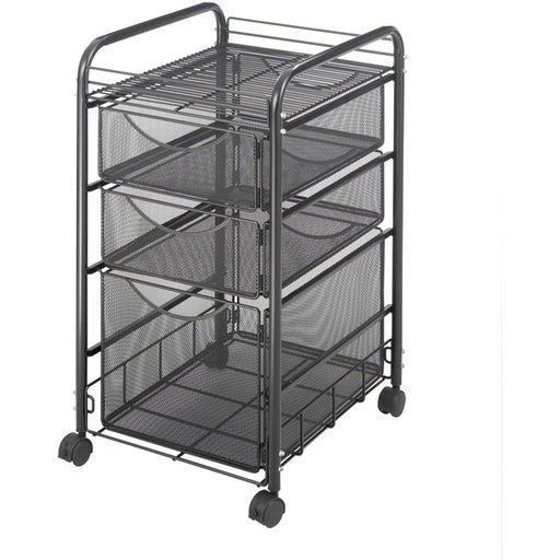 Safco Onyx Mesh File Cart - 2 Shelf - 3 Drawer - 4 Casters - 1.50" (38.10 mm) Caster Size - Steel - 15.8" (400.05 mm) Width x 17" (431.80 mm) Depth x 27" (685.80 mm) Height - Steel Frame - Black - 1 Each