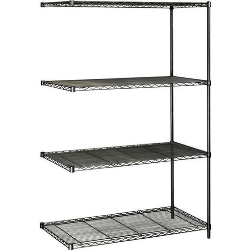 Safco Industrial Wire Shelving Add-On Unit - 48" (1219.20 mm) Width x 24" (609.60 mm) Depth x 72" (1828.80 mm) Height - 4 x Shelf(ves) - 3200 lb (1451495.58 g) Load Capacity - Adjustable Glide, Durable - Black - Powder Coated - Steel - Assembly Required