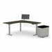 HDL L-Shape Height Adjustable Desk - Finish: Grey Dusk - Modesty Panel, Mobility, Monitor Mount, Cushioned - For Office, Monitor, File - 1 Each