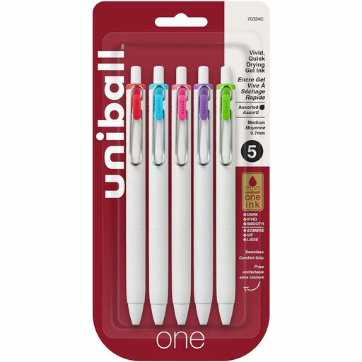 uniball one Retractable Gel Pens - uniball™ one Retractable Gel Pens, Medium Point (0.7mm), Assorted Ink, 5 Pack