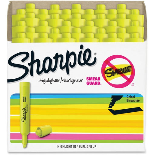 Sharpie SmearGuard Tank Style Highlighters - Narrow Narrow Chisel, Wide Marker Point - Fluorescent Yellow Ink - 36 / Pack