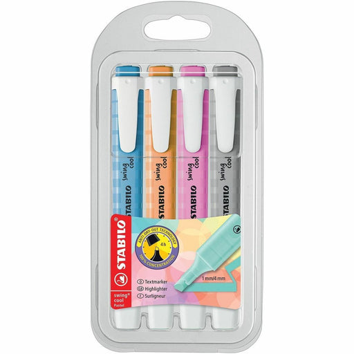 Stabilo Highlighter Swing Cool Pastel - 4 mm (0.16") Chisel Marker Point - Orange, Blue, Fuschia, Gray Ink - Water Based - 4 / Pack