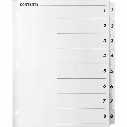 Business Source Table of Content Quick Index Dividers - Printed Tab(s) - Digit - 1-8 - 8 Tab(s)/Set - 8.50" (215.90 mm) Divider Width x 11" (279.40 mm) Divider Length - 3 Hole Punched - White Divider - White Mylar Tab(s) - 1 Set