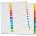 Color-coded indexes feature assorted-color laminated tabs, printed on white stock. Tabs correspond to a Table of Contents sheet that can be run through a printer for a more professional appearance. Indexes fit standard three-ring binders. Tabs and binding edges are reinforced with clear, rip-proof plastic.
