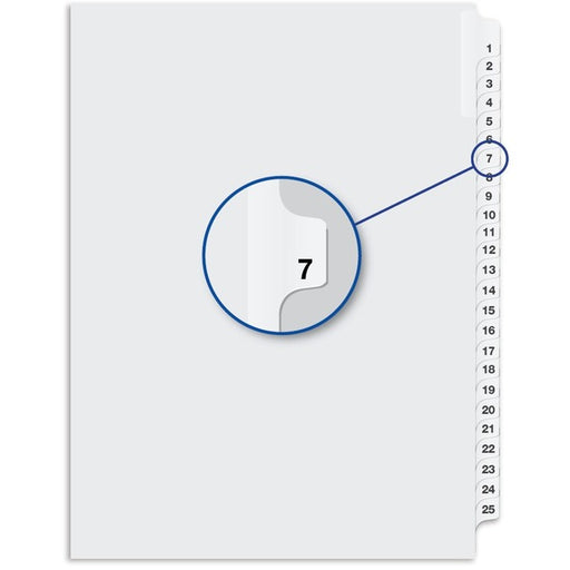 Davis Index Divider - Printed Tab(s) - 1/25 - Digit - 7 - 8.50" (215.90 mm) Divider Width x 11" (279.40 mm) Divider Length - White Divider - 25 / Pack