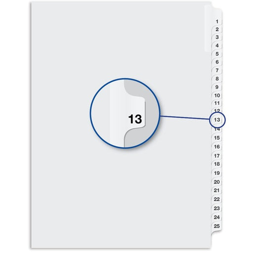 Davis Index Divider - Printed Tab(s) - 1/25 - Digit - 13 - 8.50" (215.90 mm) Divider Width x 11" (279.40 mm) Divider Length - White Divider - 25 / Pack