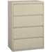 Marketing Information:36" wide lateral file features four versatile drawers with hanging file rails for side-to-side filing in letter-size, legal-size or A4-size. Each drawer has a magnetic label holder for easy identification where you need it. Design also features a core-removable lock for security, dual locking bars, full-width pull, ball-bearing slide suspension for smooth opening and closing, reinforced base, and four adjustable leveling guides for stabilization. Interlock system prohibits the extension of more than one drawer at a time for your safety. Counterweight prevents tipping. Lateral file meets or exceeds applicable ANSI/BIFMA standards.