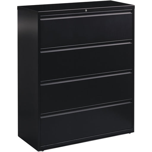 Lorell Fortress Series Lateral File - 42" (1066.80 mm) Width x 18.6" (473.08 mm) Depth x 52.5" (1333.50 mm) Height - 4 x Drawer(s) for File - Letter, Legal, A4 - Lateral - Interlocking, Leveling Glide, Label Holder, Ball-bearing Suspension - Black - Recyc
