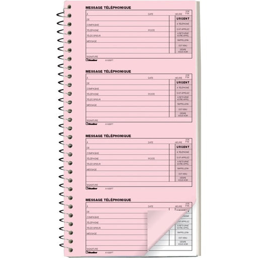 Blueline 400 Messages (10"3/4 x 5"3/4), French - Spiral Bound - Carbonless Copy - 5 3/4" (14.6 cm) x 10 3/4" (27.3 cm) Sheet Size - Pink, White - White Cover - 1 Each