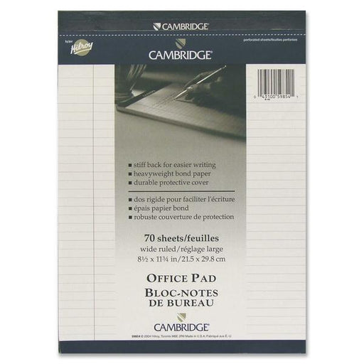 Hilroy Cambridge Office Notepad - 70 Sheets - Ruled Front Ruling - Ruled Margin - 20 lb (9071.85 g) Basis Weight - Legal - 8 1/2" (215.90 mm) x 11 3/4" (298.45 mm) Sheet Size - White Paper - Numbered, Durable Cover, Micro Perforated, Easy Tear, Stiff-back