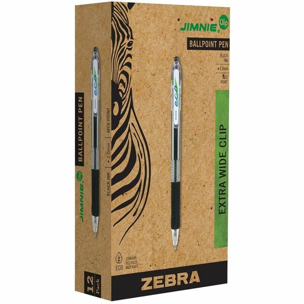 Retractable ballpoint pen delivers neat, accurate lines with smooth-flowing ink. Design features a soft rubber grip for comfort and extra-wide clip that attaches to books, binders, legal pads and more. Clear barrel displays ink supply. Ballpoint pen is made with a high percentage of post-consumer material. Refillable with Zebra's LH-Refill.