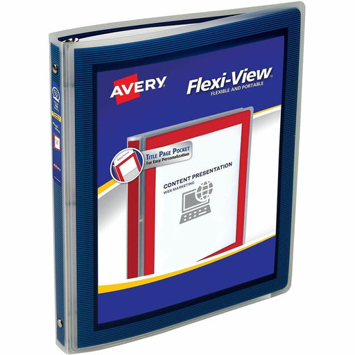 Avery® Flexi-View™ Binder 1/2" , Round Rings, Blue - 1/2" (12.70 mm) Binder Capacity - Letter - 8 1/2" (215.90 mm) x 11" (279.40 mm) Sheet Size - 100 Sheet Capacity - 3 x 0.50" (12.70 mm) Ring(s) - Fastener(s): Round Ring - Pocket(s): 0, Interna
