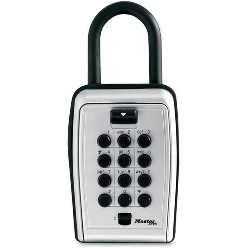 Master Lock Portable Key Safe - Push Button Lock - Weather Resistant, Scratch Resistant - for Door - Overall Size 7.2" (182.63 mm) Height x 5.3" (133.35 mm) Width x 2.2" (56.39 mm) Depth - Black, Silver - Metal, Vinyl