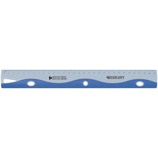 Westcott Antimicrobial 30cm Wave Ruler - 30.48 cm Length - Imperial Measuring System - Blue, Gray - 1 Each