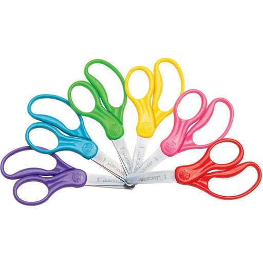 Westcott 5" Antimicrobial Kids Scissors - 5" (127 mm) Cutting Length - Left/Right - Stainless Steel - Blunted Tip - Assorted - 6 / Pack