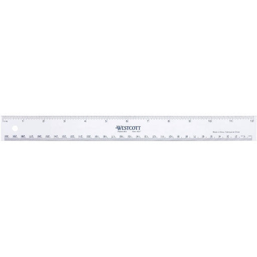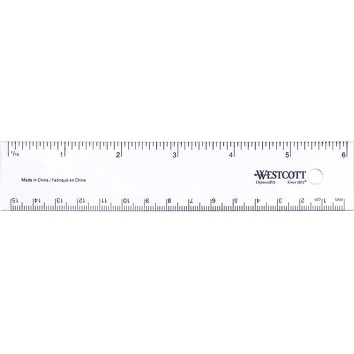 Westcott Shatter-proof Ruler - 12" (304.80 mm) Length x 1" (25.40 mm) Width - 1/16 Graduations - Metric, Imperial Measuring System - Plastic - Clear - 1 Each