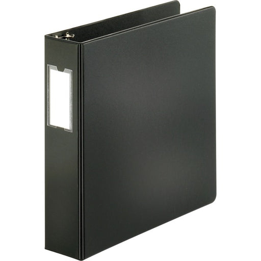 Business Source Basic Round Ring Binder w/Label Holder - 2" (50.80 mm) Binder Capacity - Letter - 8 1/2" (215.90 mm) x 11" (279.40 mm) Sheet Size - 3 Ring(s) - Fastener(s): Round Ring - Vinyl - Black - Open and Closed Triggers, Label Holder - 1 Each