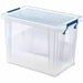 Made from impact resistant polypropylene. Strong enough to stack thanks to the double reinforced base and corners. Clip-lock clamps securely lock the lid tightly in place. Ideal for the storage of letter sized paper. 18.5 L.